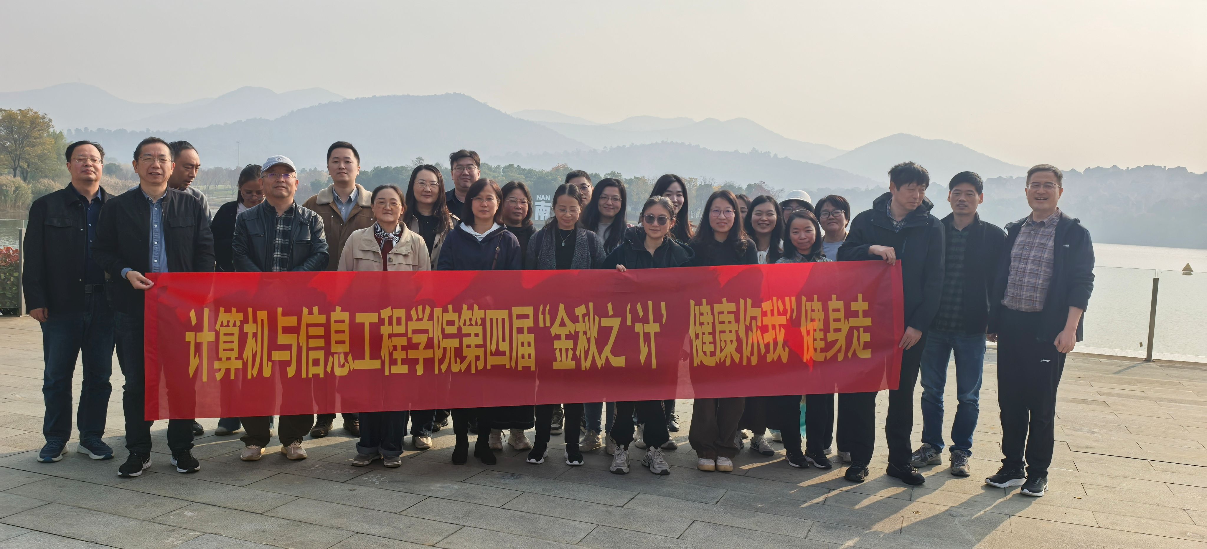 为响应国家全民健身战略,丰富教职工文体生活,11月14日,beats365唯一官网入口官网工会主办的第四届“金秋之‘计’,健康你我”健身走活动在浦口汤泉九龙湖景区顺利举行,40余名教职工齐聚湖畔,共赴这场自然与运动的美好之约。