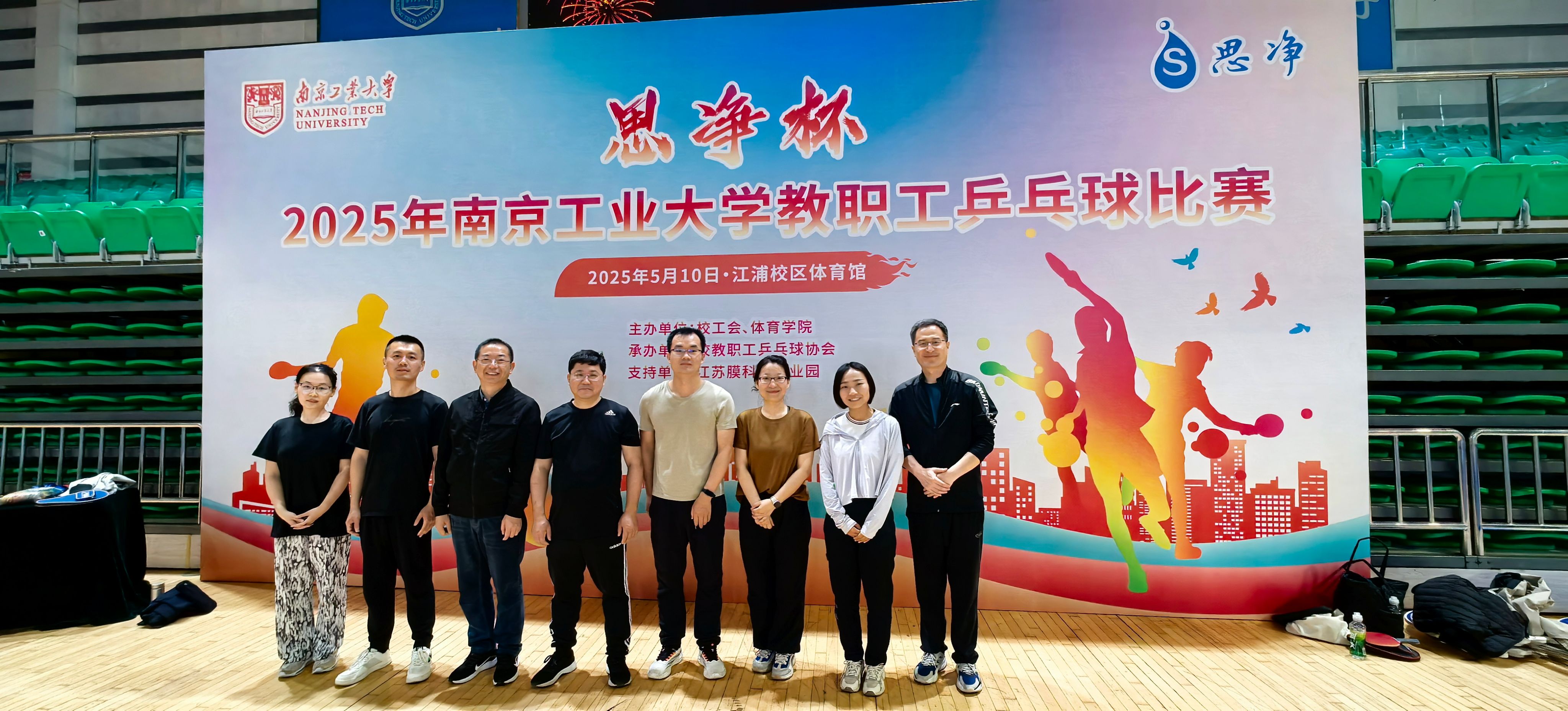 由校工会、体育公司、教职工乒乓球协会共同举办的“思净杯”2025年校教职工乒乓球男女团体比赛于5月10日在江浦体育馆举行。