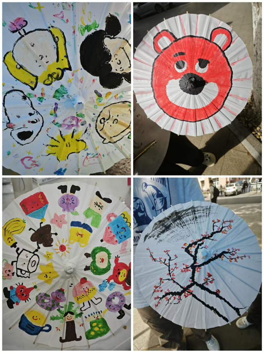 本活动旨在让同学们通过亲手绘制伞面,亲身感受油纸伞文化的魅力。活动现场,五彩的颜料、精巧的画笔,还有那一把把素白的油纸伞,共同交织成一幅绚丽多彩的画卷。同学们全神贯注,充分发挥自己的想象力和创造力。有的描绘了盛开的花朵,有的勾勒出灵动的动物,还有的展现了抽象的几何图案。每一把伞面都凝聚着同学们的智慧和心血,展现了其独特的审美和创造力,将油纸伞的古典韵味与现代艺术气息完美融合。