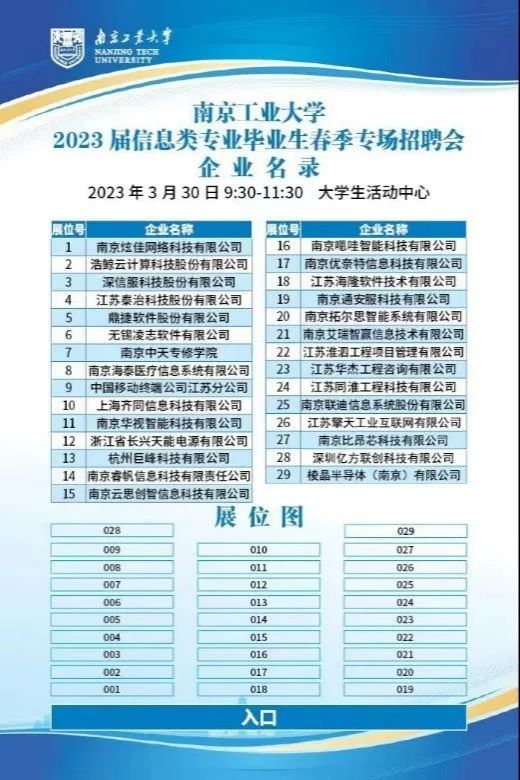 南京炫佳网络科技有限公司、浩鲸云计算科技股份有限公司、中国移动终端公司江苏分公司等29家企业参加招聘会,提供了近百个信息类专业岗位。招聘单位通过海报展示、面对面交流等形式向求职员工展示了招聘要求及薪资待遇,毕业生们积极投递简历,现场氛围火热。