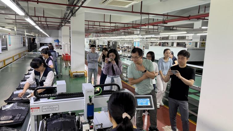 教师们在企业负责人的引导下,首先深入智能化生产车间,实地观摩了全流程自动化生产线。车间内,高速运转的机械臂精准抓取零部件,AGV 物流小车沿着规划路径有序运输物料,智能质检设备通过机器视觉技术对产品进行毫米级精度检测,数据看板实时显示着各环节的生产效率、能耗指标及质量参数。教师们不时驻足观察,就柔性制造系统的调度逻辑、工业传感器的部署方案、生产线物联网平台的数据采集频率等技术细节与企业工程师展开交流,部分教师还拿出手机拍摄智能仓储系统的自动分拣过程,对车间内 “人、机、物、系统” 的高效协同运作表示赞叹。