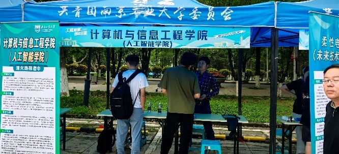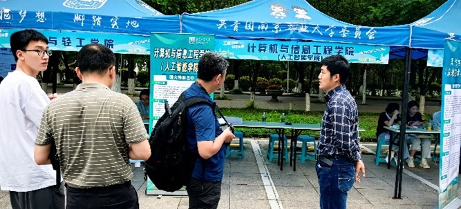 活动中,王兴亚老师为师生及家长带来了一场生动的专业介绍会,详细解读了计算机科学与技术专业的培养目标、课程体系及发展前景,帮助考生深入了解专业内涵与学科魅力。由刘望舒,朱晓梅,金晶,周祥臻四位老师组成的公司招生咨询团队也在现场为家长和考生提供一对一服务,耐心解答专业选择、就业方向等热点问题,为学子们的学业规划提供精准指导。在沉毅广场的专业路演环节,郭天文老师带领员工团队展示了“机器视觉与AI的采摘大挑战”创新项目。通过智能机器人识别与抓取果蔬的趣味演示,生动呈现了人工智能与计算机视觉技术的应用场景,吸引了大量家长和员工驻足互动。现场气氛热烈,许多考生在体验后表达了对计算机、电子通信及人工智能领域的浓厚兴趣。