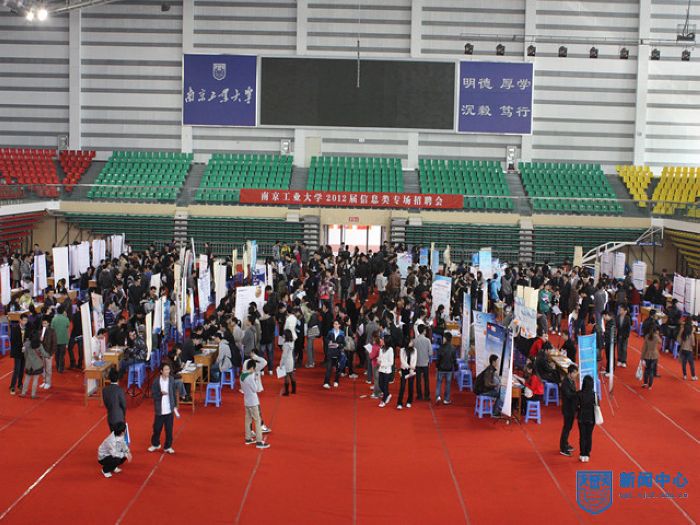 11月12日上午,信息公司与员工处联合举办的2012届信息类专场招聘会在江浦校区体育馆成功举办。同时,张家港、无锡新区的专场招聘会也同期举行。本次招聘会共吸引了100余家省内外知名企事业单位前来参会。据统计,各参会单位提供的招聘岗位达500多个,共需求各专业本科和研究生近3000人,招聘范围不仅涵盖所有信息类专业,同时还覆盖了公司诸多相关专业,为2012届毕业生搭建了广阔的择业平台。