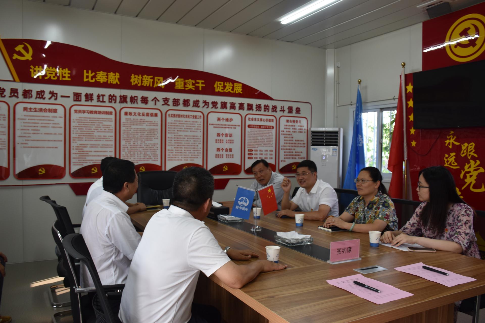 6月29日下午,计算机公司行政党支部党员来到中铁广州工程局浦口区沿山大道项目部,与项目部党支部举行支部共建签约仪式,共同开展学习交流活动。