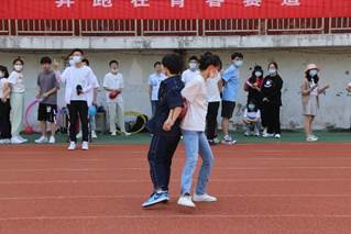 随后,以支部为单位进行趣味体育竞赛,“管道传球”、“一圈到底”、“心心相印”、“手拉手零距离”四个集体项目,不仅仅是对党员同志们体力的考验,更对支部成员协作能力和默契程度的比拼。100%全覆盖的参与度,热情激扬的青春面貌,春日里的操场上,挥洒下同学们的汗水,更充满了青年们的笑语与欢呼。
